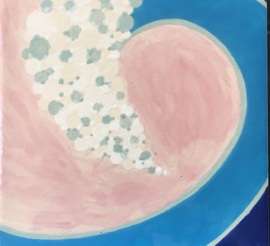 Before I dive into a larger project, I usually create my design on a smaller scale, 8" x 8" (20cm x 20cm) tile, to see how the colors are going to look like after firing.